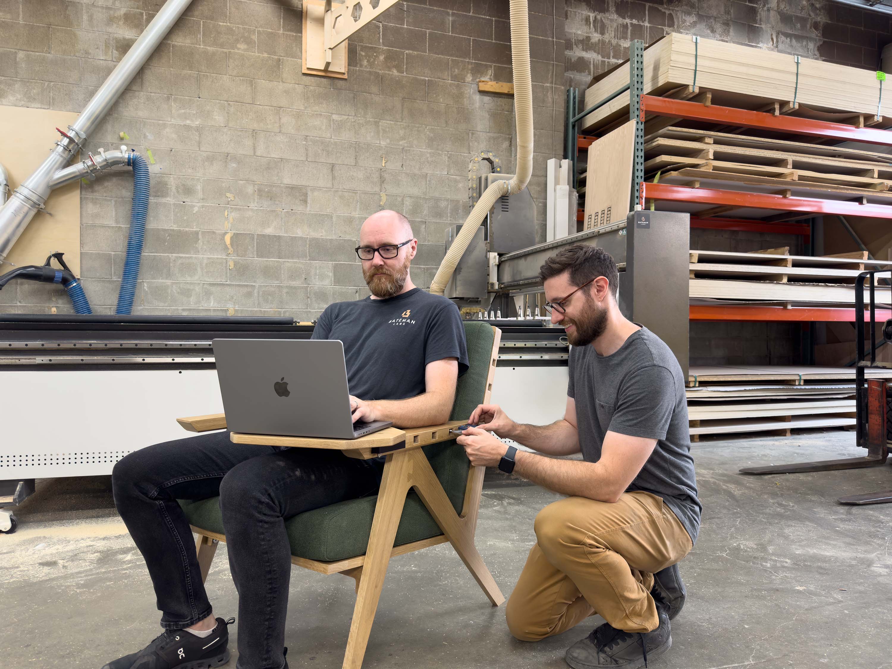 Andrew and I opened a workshop in Vancouver to explore this question, and our first product was a lap desk that attaches to the most popular arm-chair of all time: IKEA's POÄNG. We love the sitting position of the POÄNG and thought it would make a phenomenal workstation for a laptop.