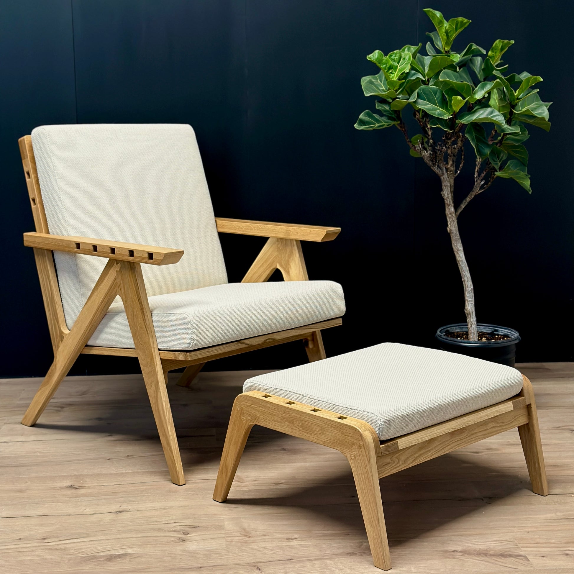 Crafted by hand in our Vancouver workshop. Built out of solid Black Walnut and solid White Oak with high quality upholstery
